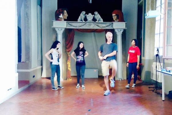 Learning tricks of the characters of the Commedia dell’Arte.